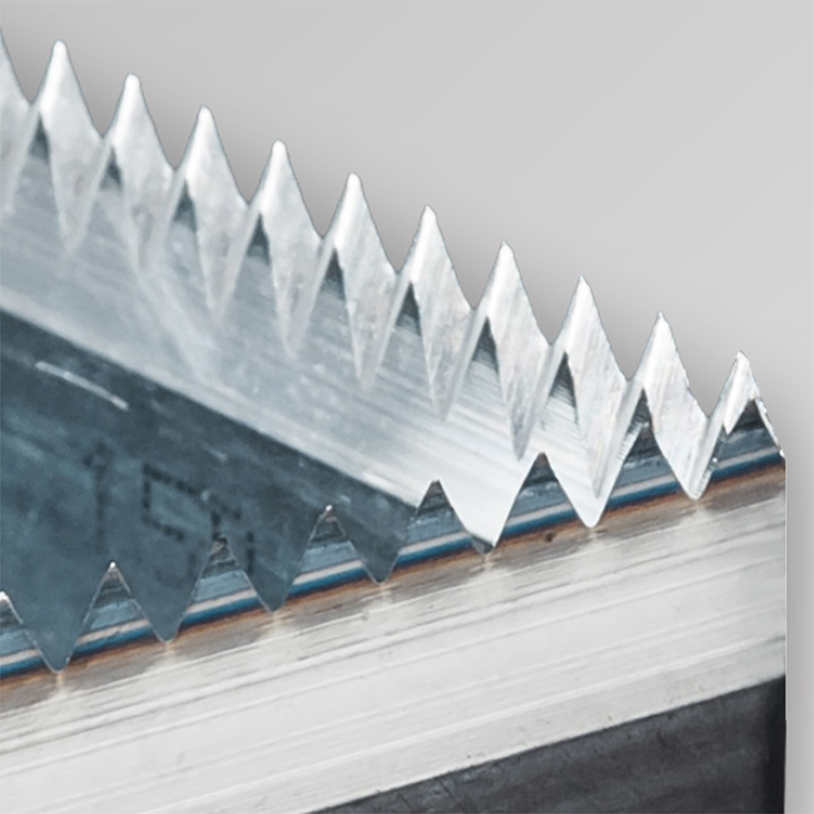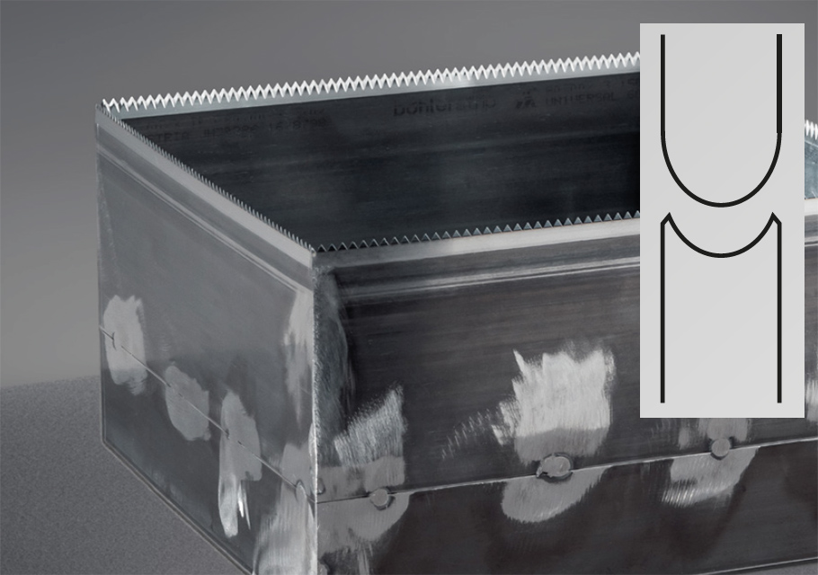 To increase cutting rule height, bohlerstrip applies a smart and proven solution. Two individual cutting rules, each 100 mm high, are joined via a connecting tunnel to achieve a total height of 200 mm. The specially designed back and cutting geometries fit together perfectly, allowing for precise welding. The result is a stable, robust cutting rule with a total height of 200 mm, ideally suited for demanding honeycomb die‑cutting applications.